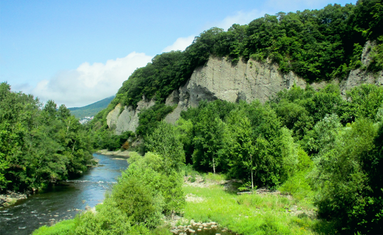 豊平川の激流部に位置し,ダイナミックな川の流れや荒々しい崖、深い森の姿が自然の雄大さを感じさせてくれます。